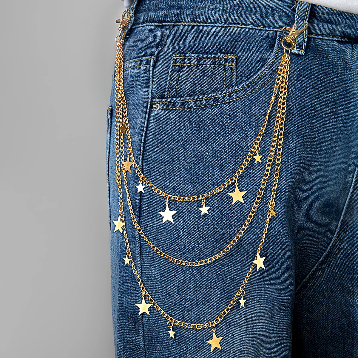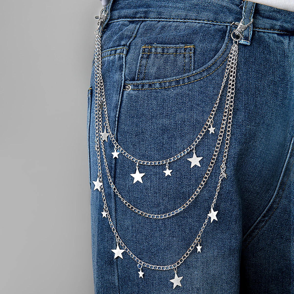 Elevate your street style with our cross-border hip-hop punk waist chain featuring star and moon pendants. This multi-layer accessory adds an edgy, fashionable touch to any outfit, perfect for men seeking bold urban fashion statements. Crafted from durable metal with intricate detailing, this waist chain combines rebellious punk aesthetics with contemporary streetwear appeal.