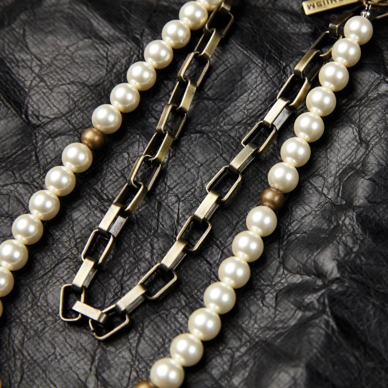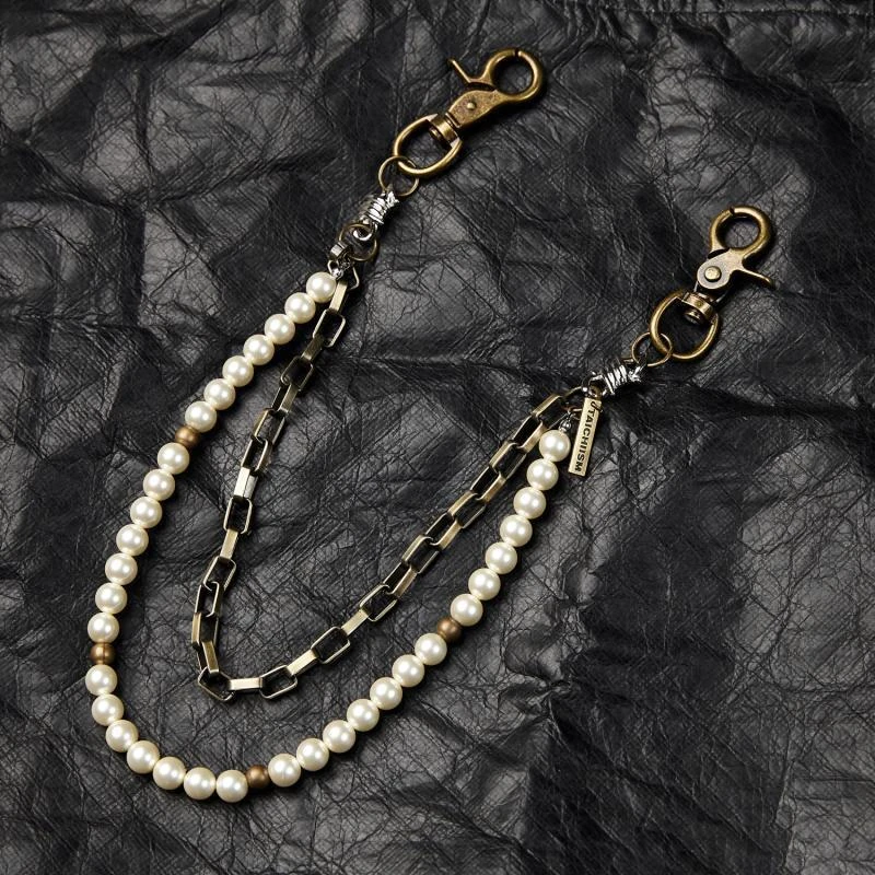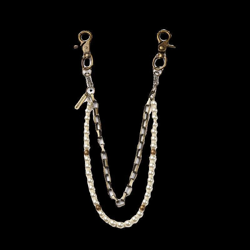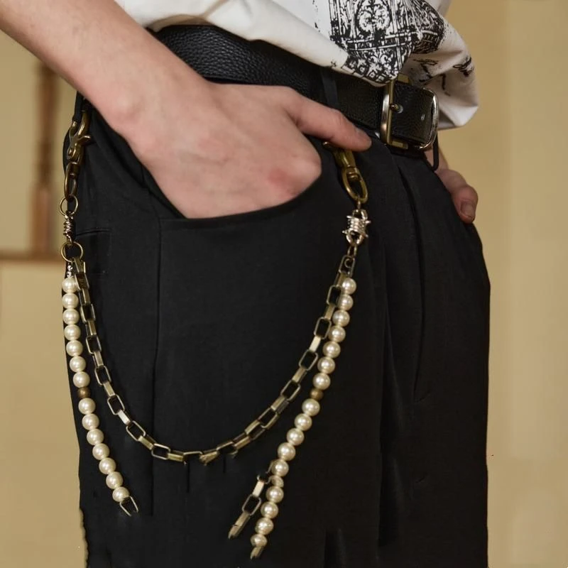 Transform jeans with elegant white pearl waist chains. Lightweight, versatile accessory for fashion-forward styling. Perfect for casual and streetwear looks.